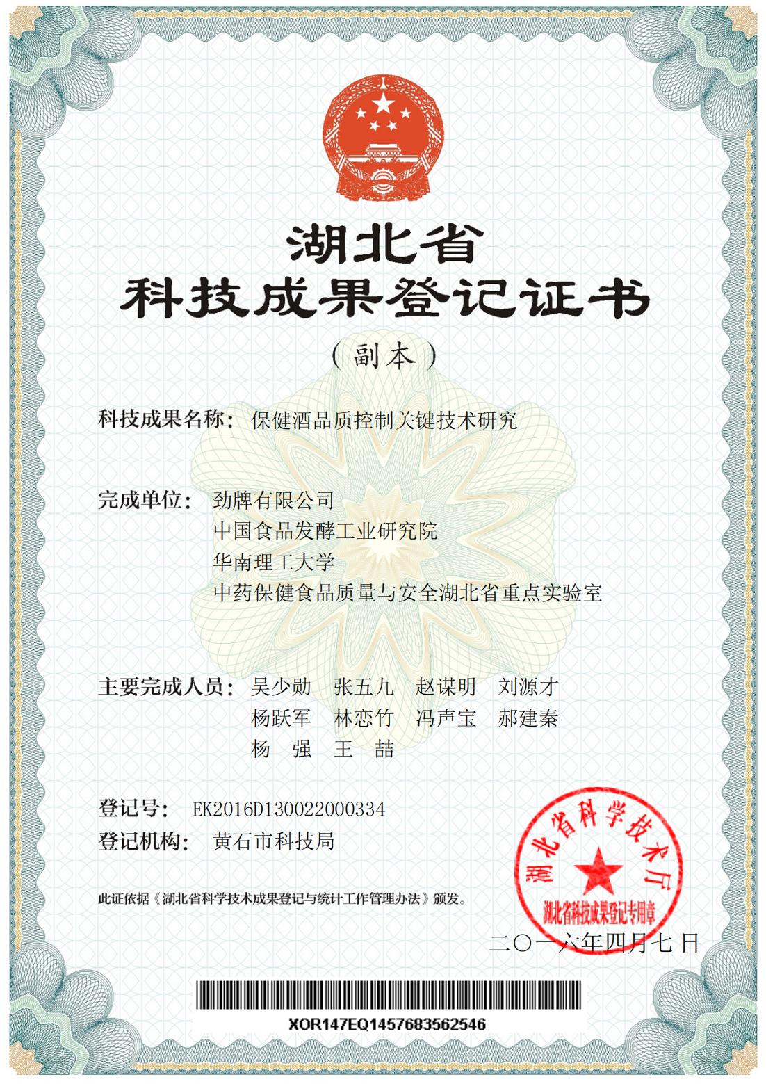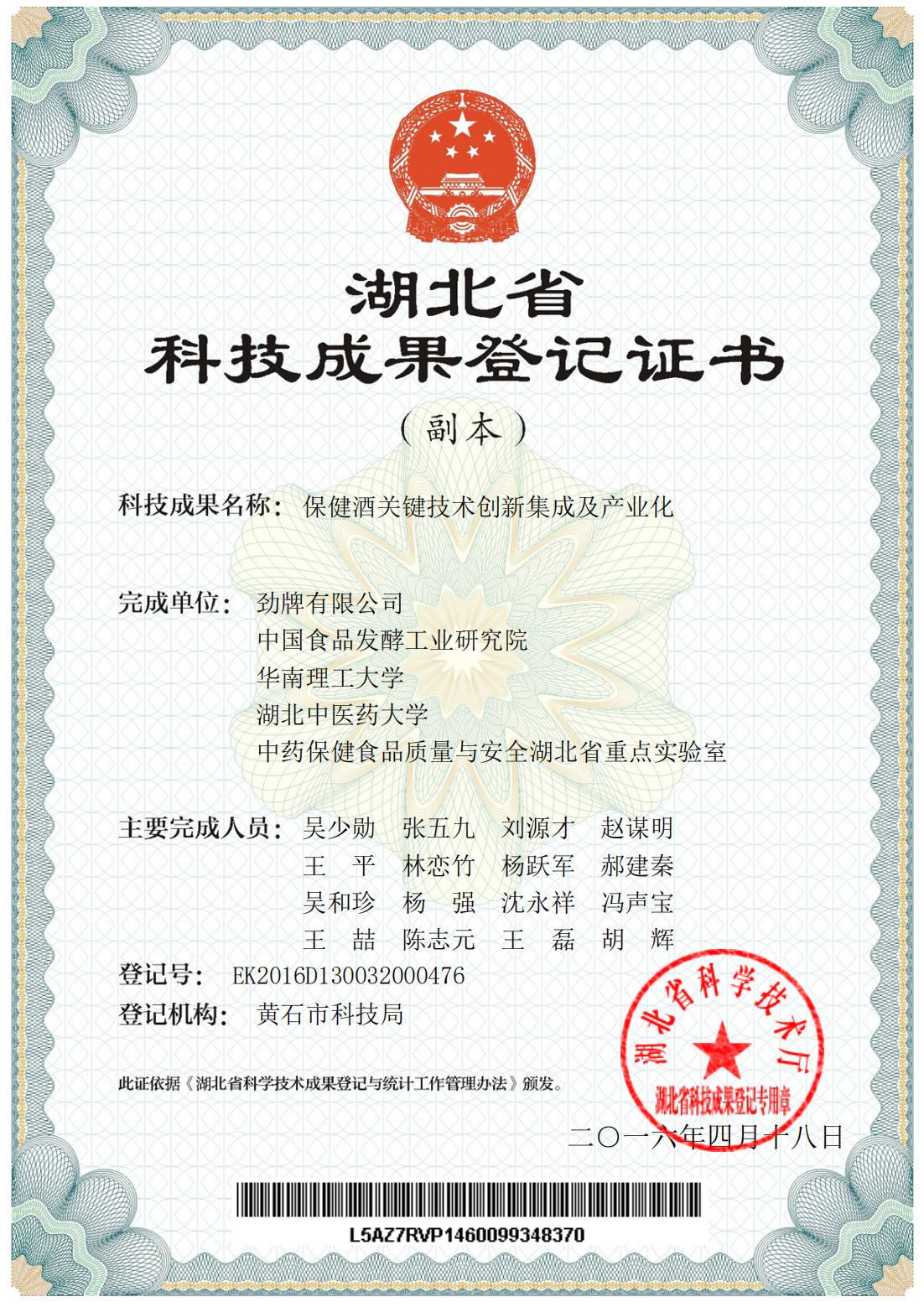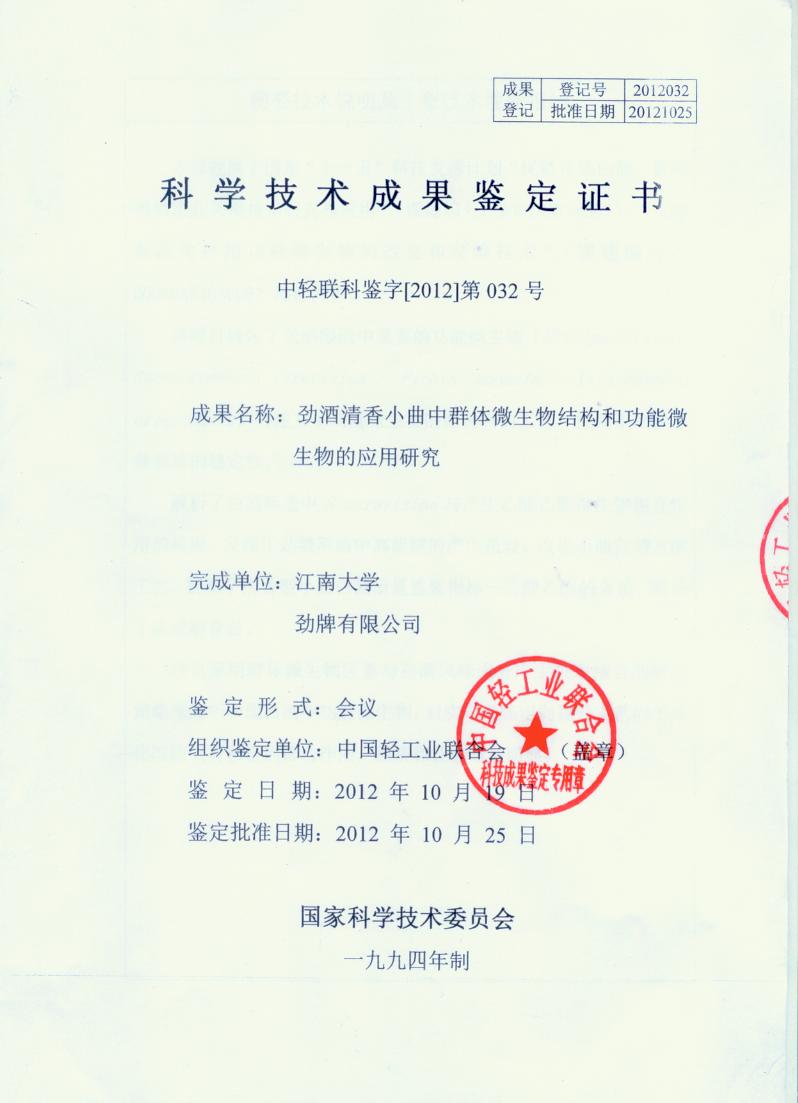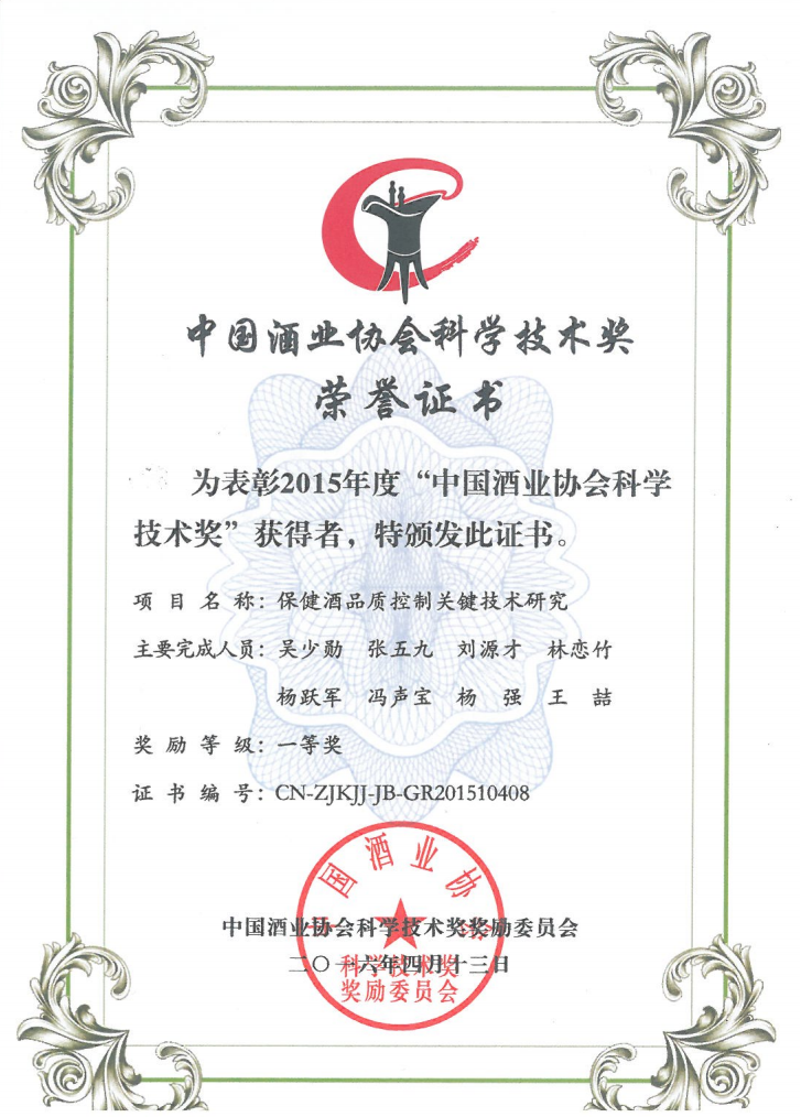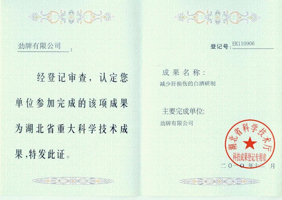 目前勁牌有限公司共獲得國家級、省級、行業(yè)級科技獎勵27項。其中國家級科技獎1項,省部級科技獎11項,行業(yè)級科技獎15項。