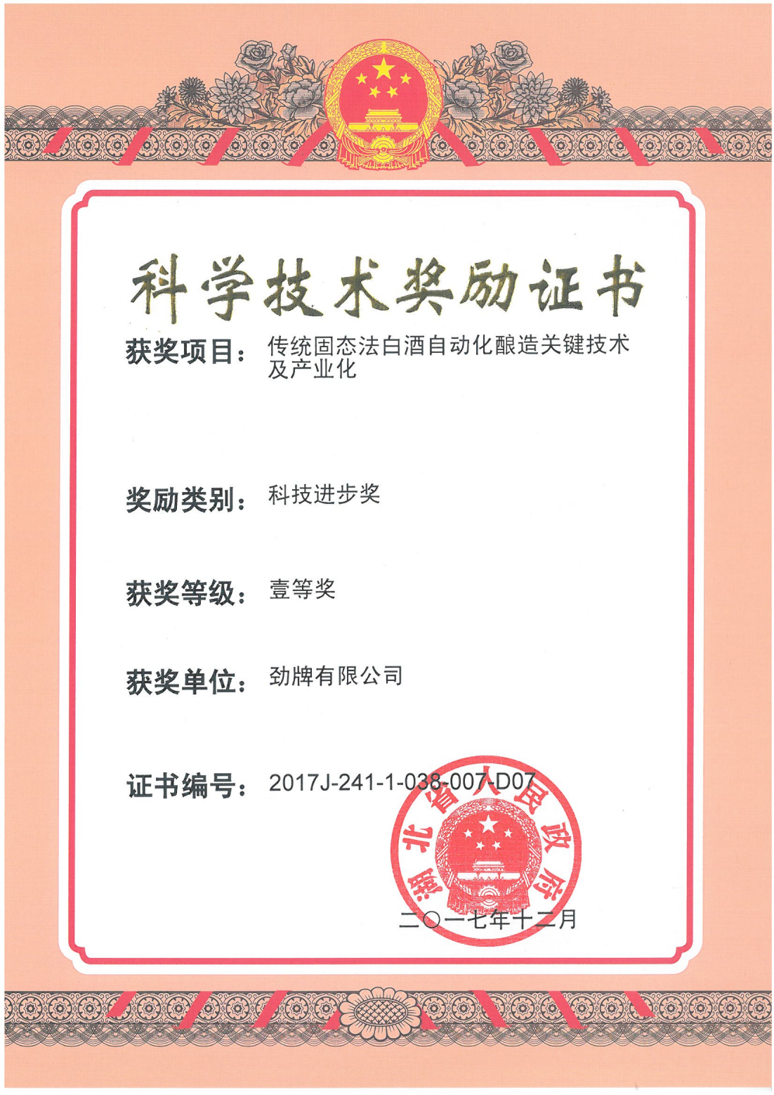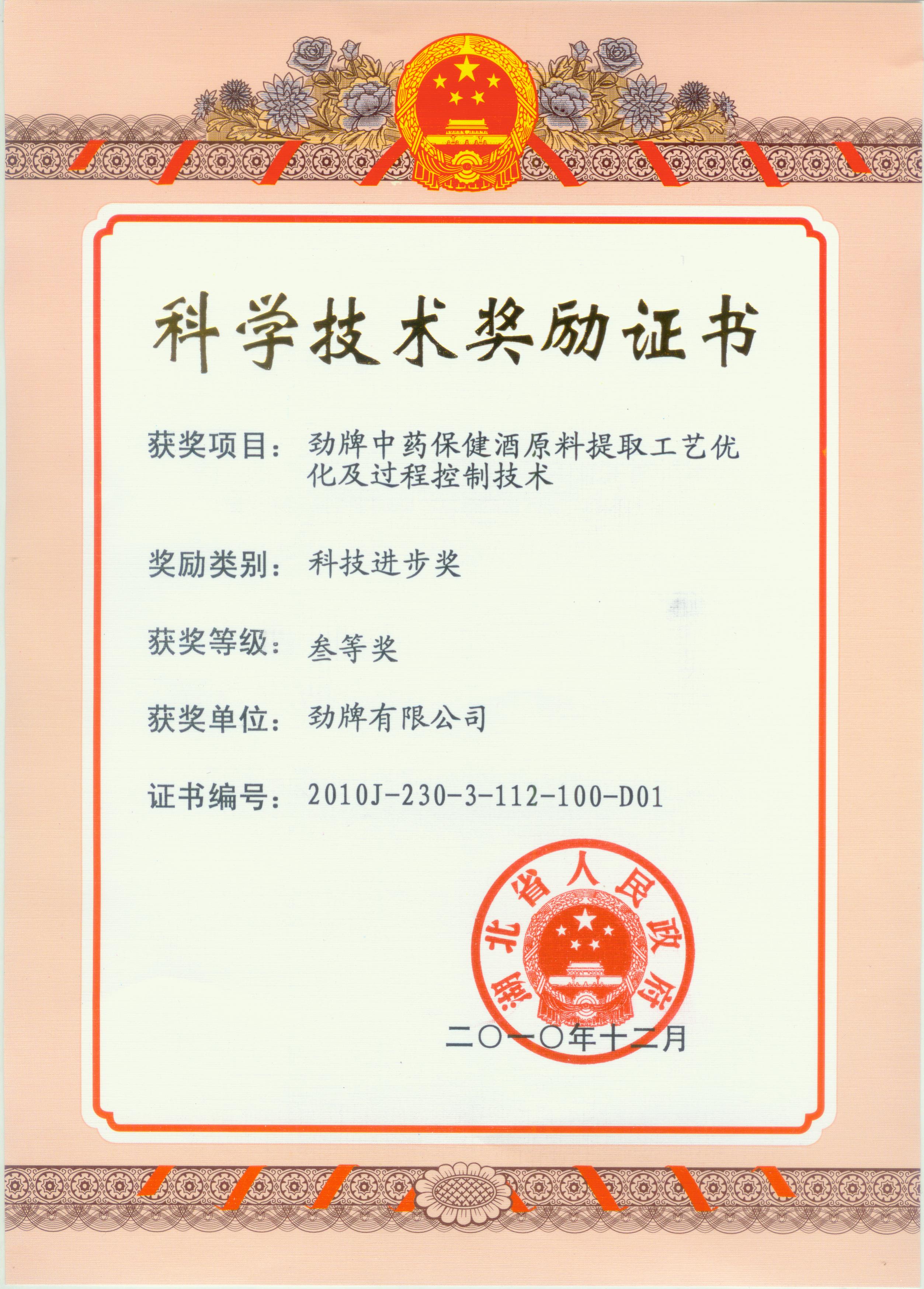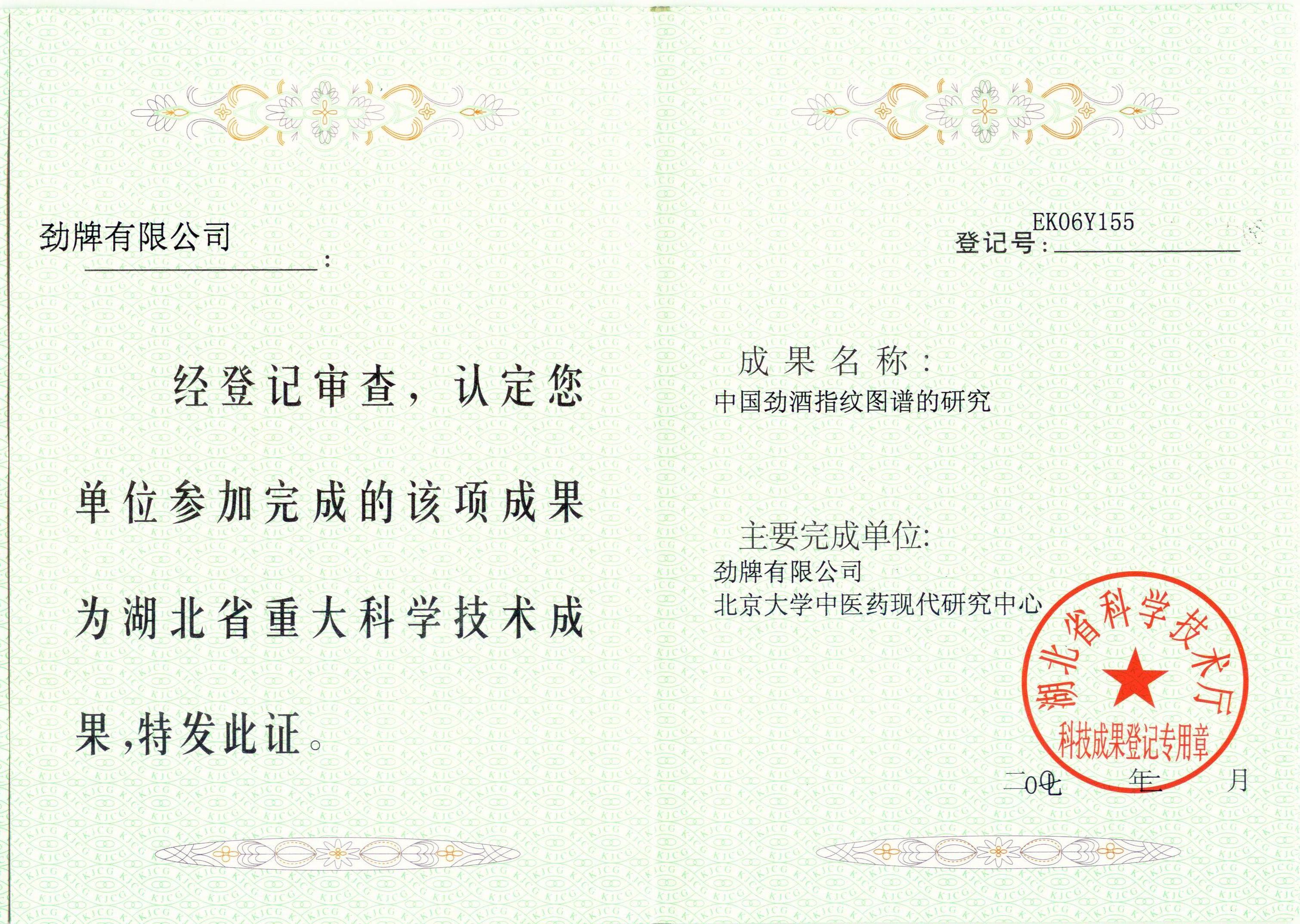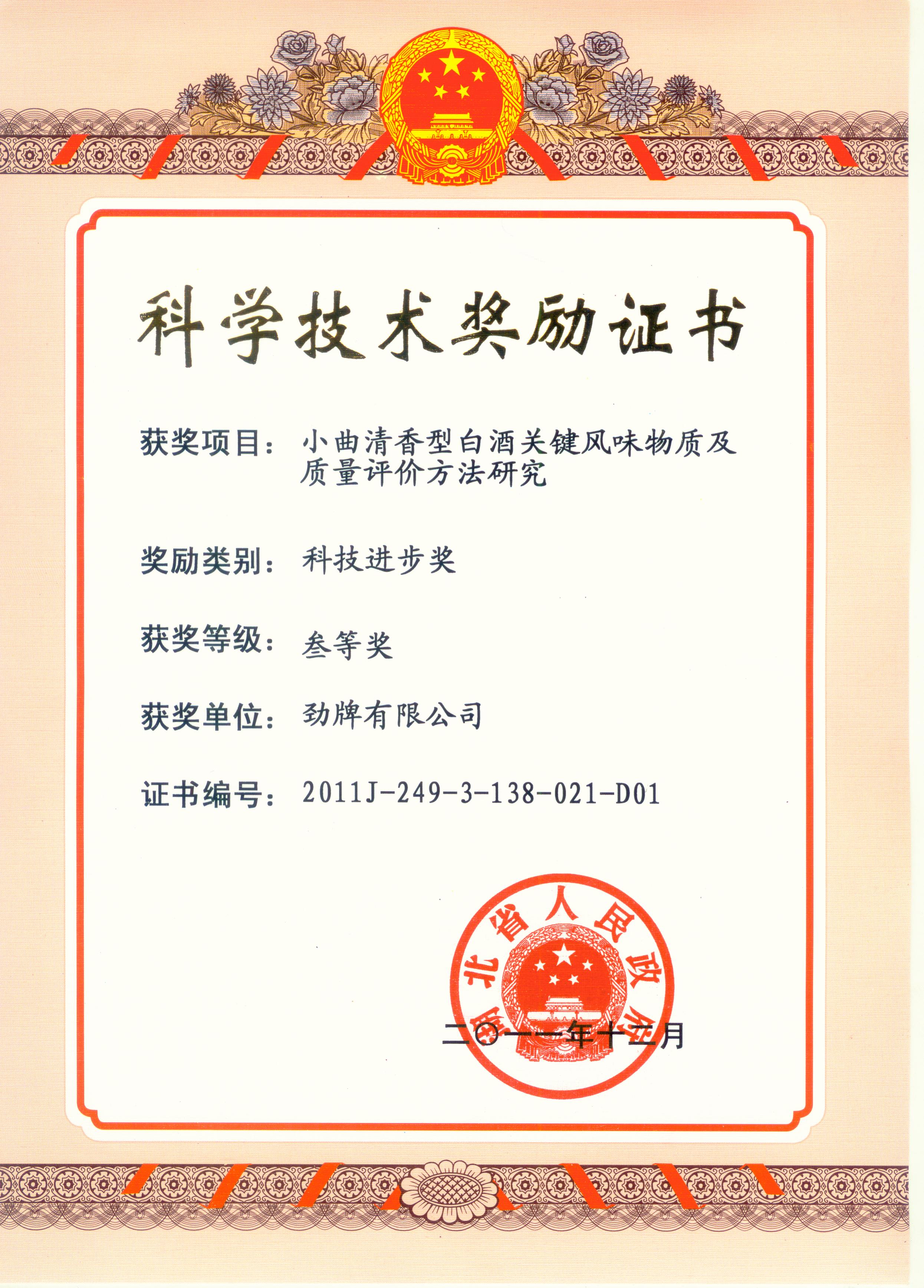 目前勁牌有限公司共獲得國家級、省級、行業(yè)級科技獎勵27項。其中國家級科技獎1項,省部級科技獎11項,行業(yè)級科技獎15項。