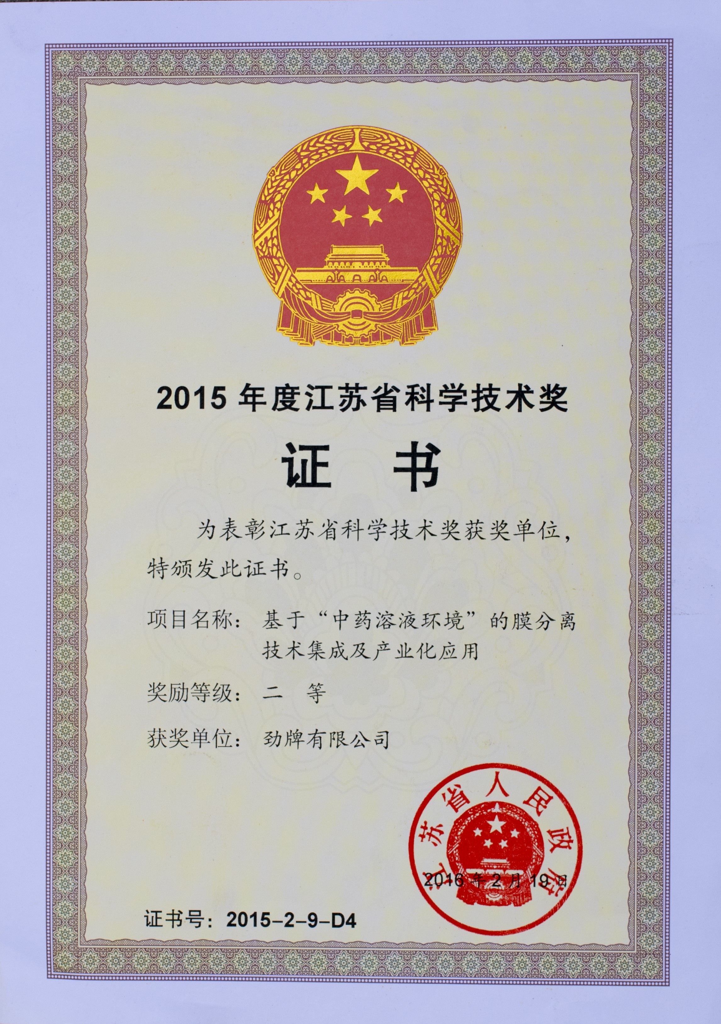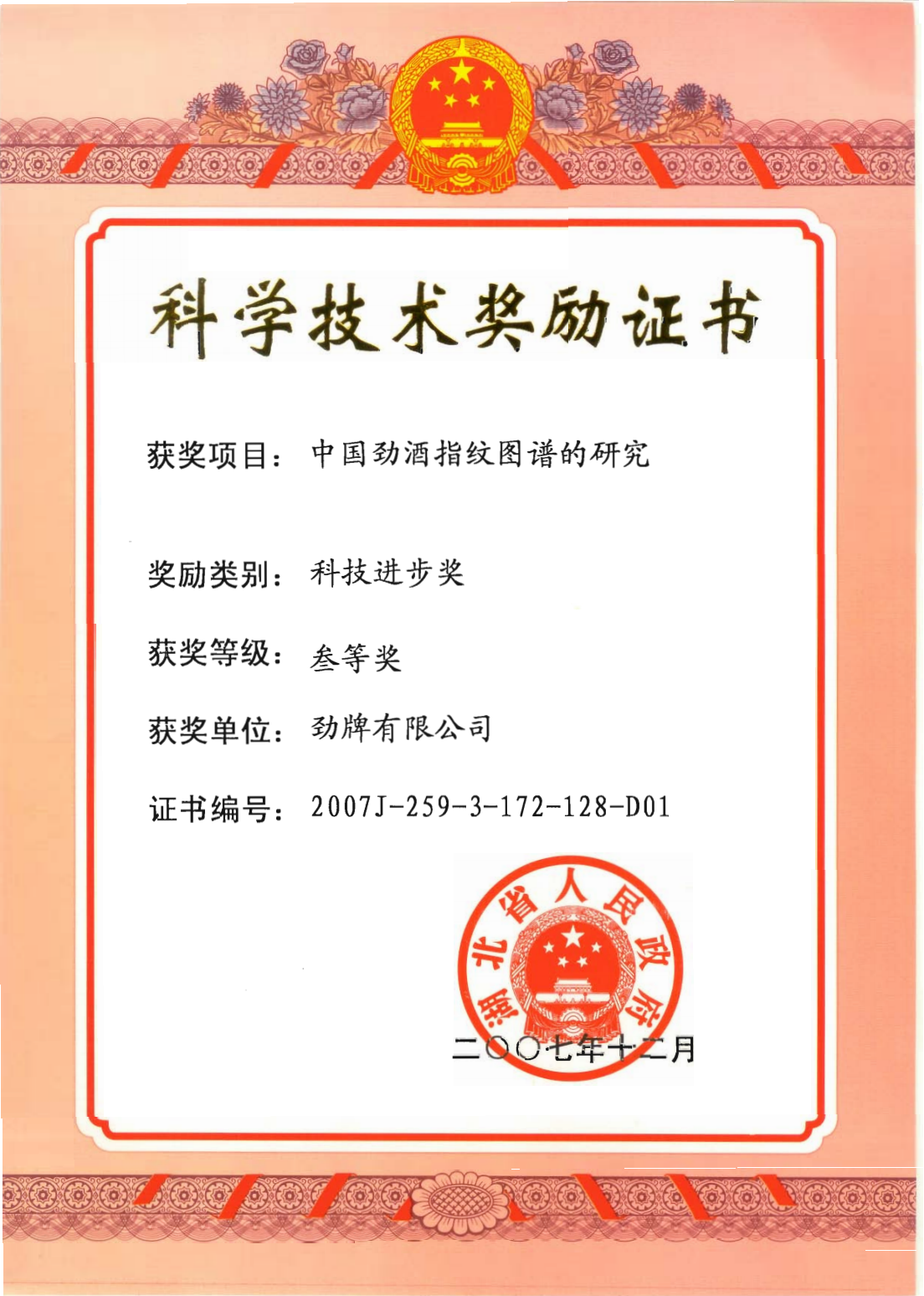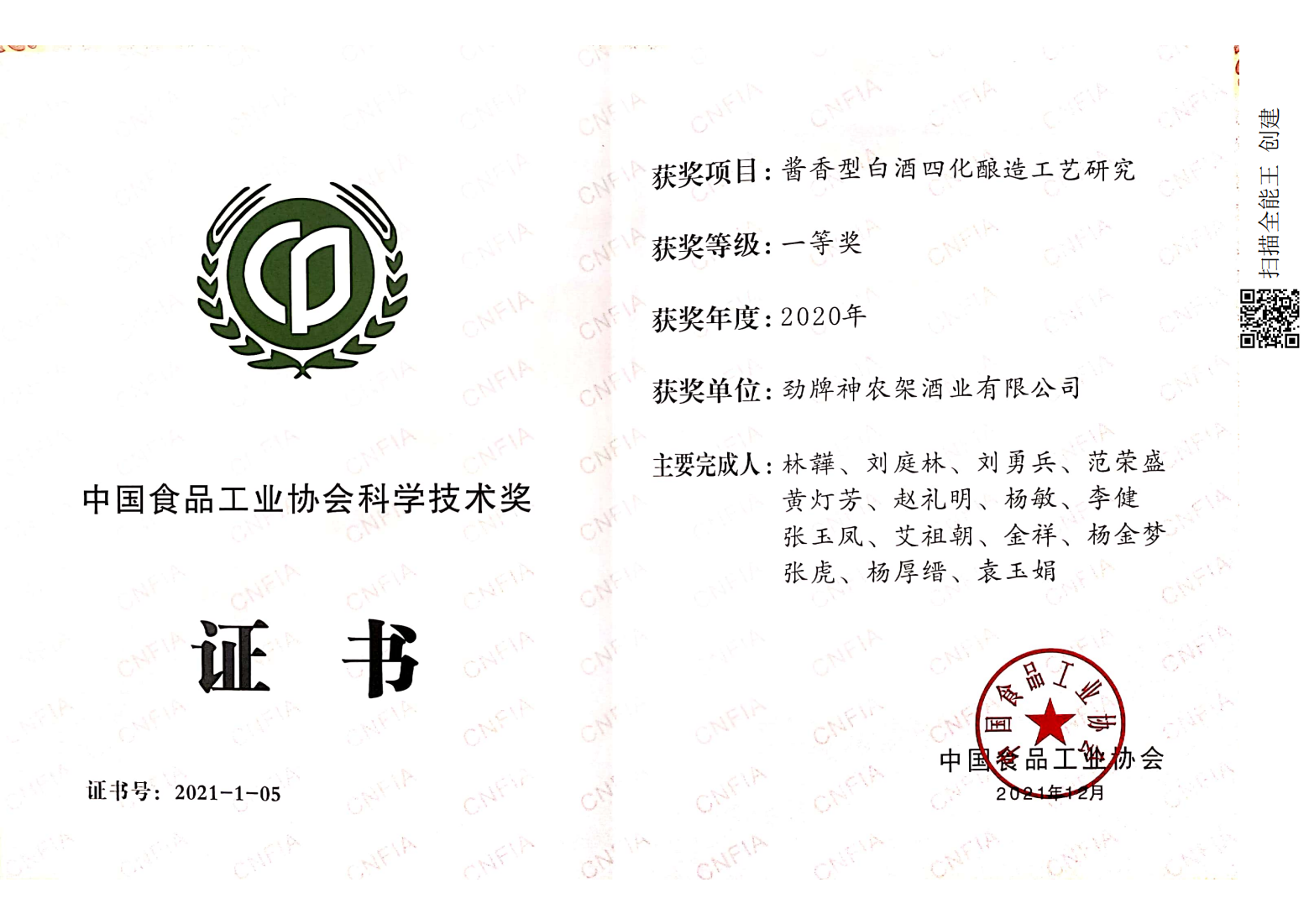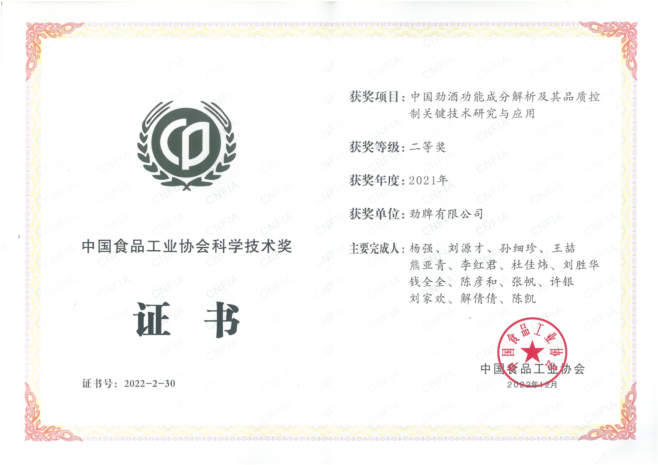 目前勁牌有限公司共獲得國家級、省級、行業(yè)級科技獎勵27項。其中國家級科技獎1項,省部級科技獎11項,行業(yè)級科技獎15項。