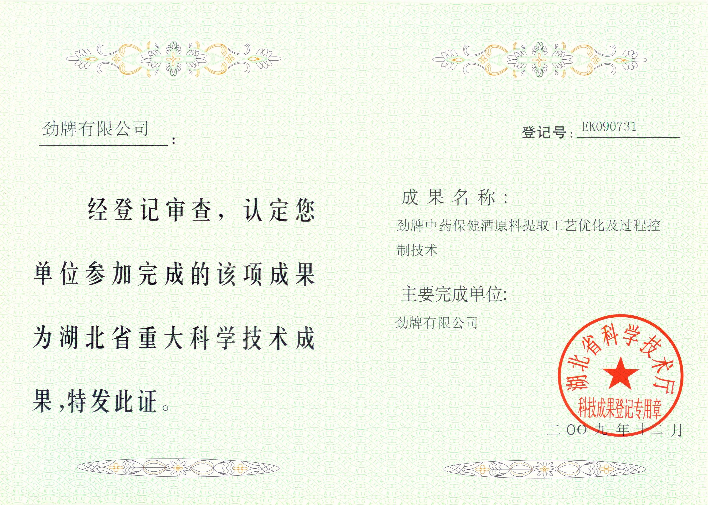 近年來,公司圍繞保健酒、草本白酒和中草藥新產(chǎn)品研發(fā)、產(chǎn)品改進和基礎(chǔ)應(yīng)用技術(shù),在中藥數(shù)字化提取、小曲酒釀造新工藝、中藥指紋圖譜等核心技術(shù)方面擁有自主知識產(chǎn)權(quán),通過行業(yè)協(xié)會等鑒定機構(gòu)技術(shù)評估22項,其中15項成果鑒定為“國際領(lǐng)先”水平,7項成果鑒定為“國際先進”水平。